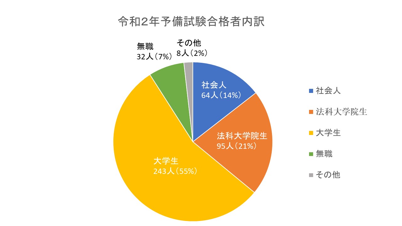 まず予備試験の合格者の内訳ですが、下記のようになっています。