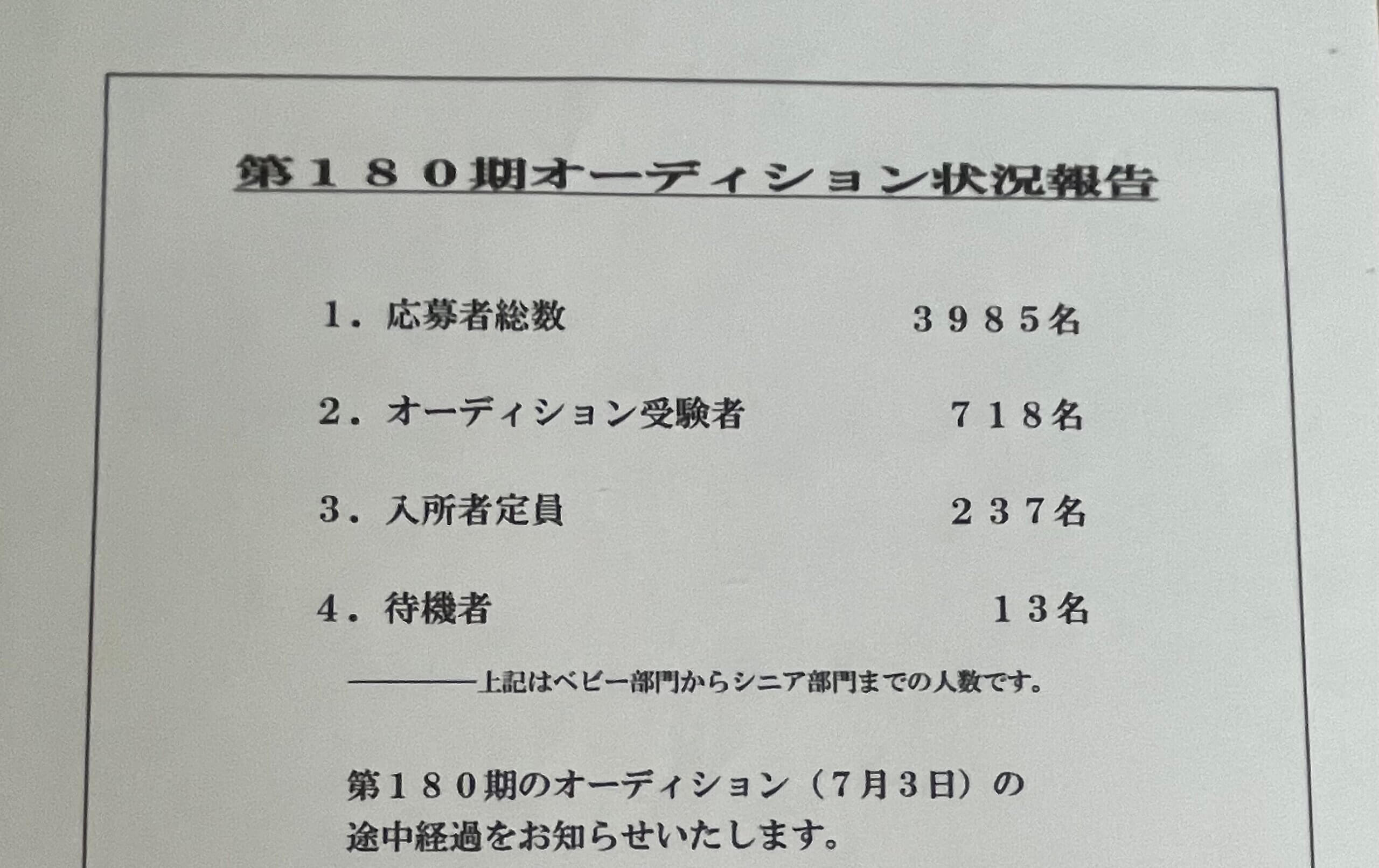 第180期テアトルアカデミーオーディションの応募者総数3985名。