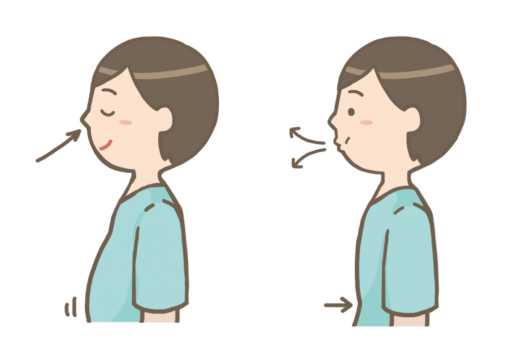 また、鼻から吸うよりも口から吸った方が腹式呼吸になりやすいです。